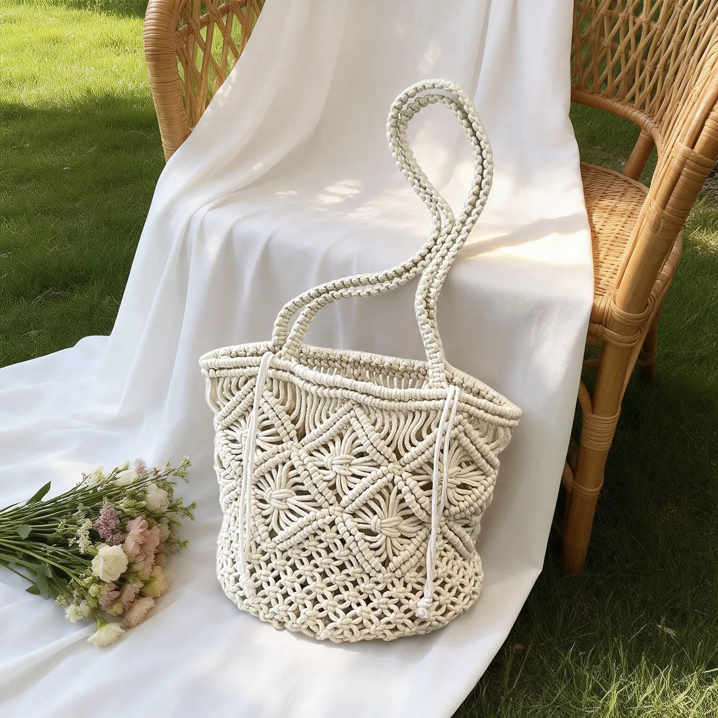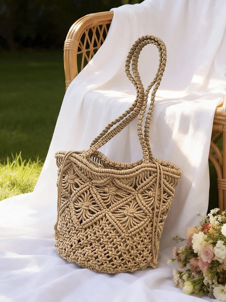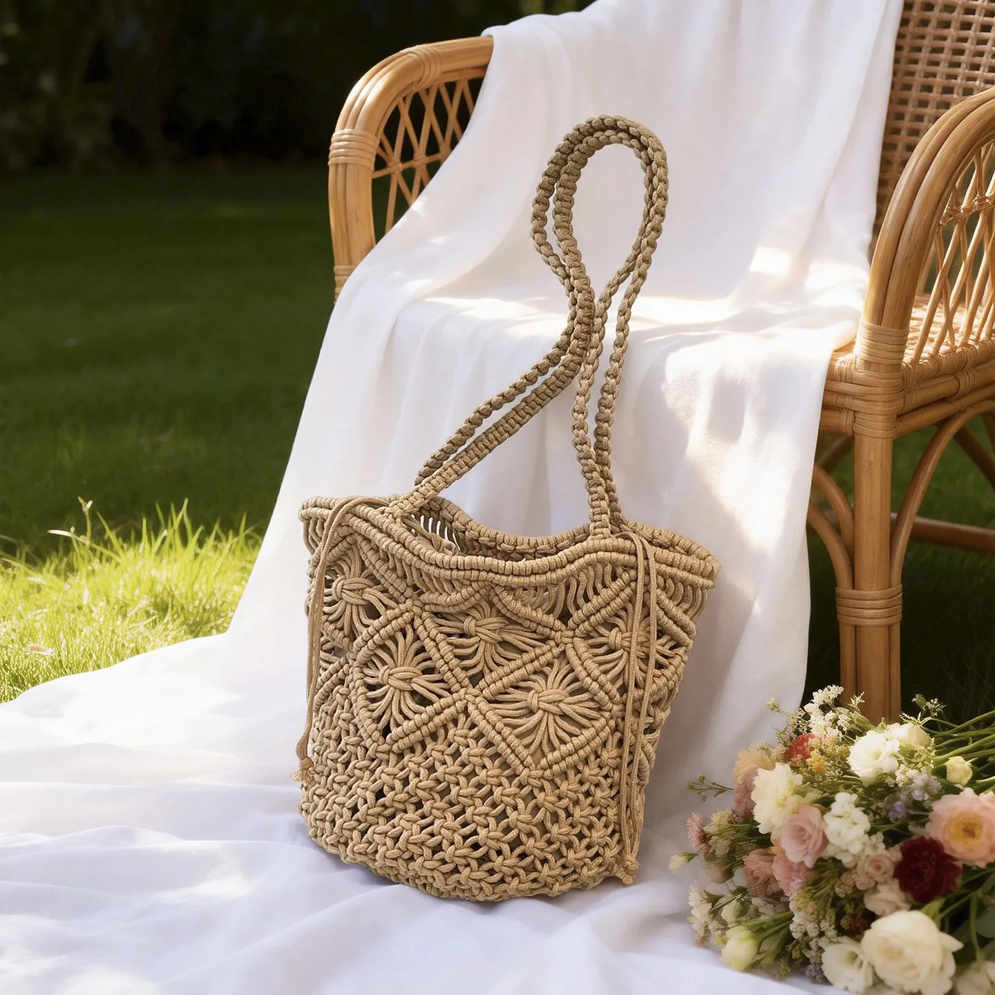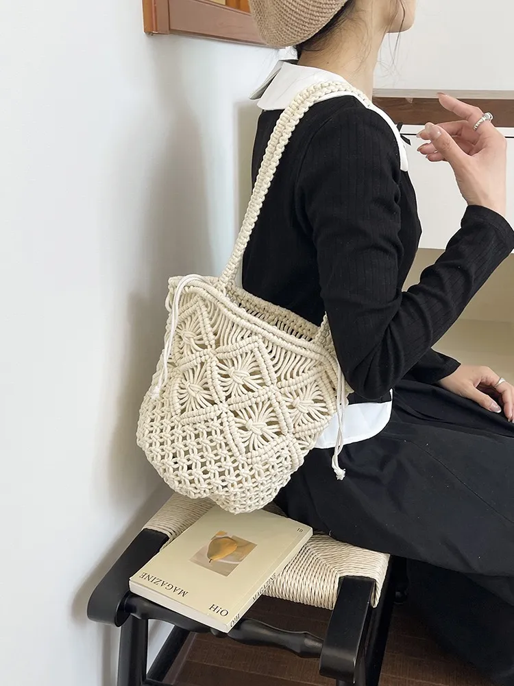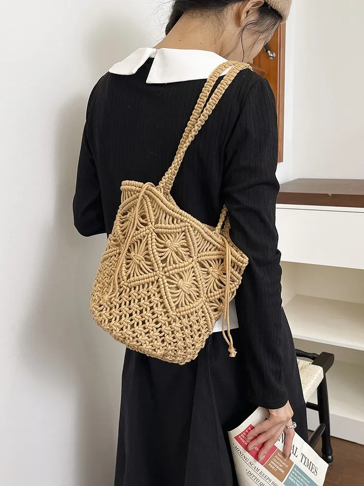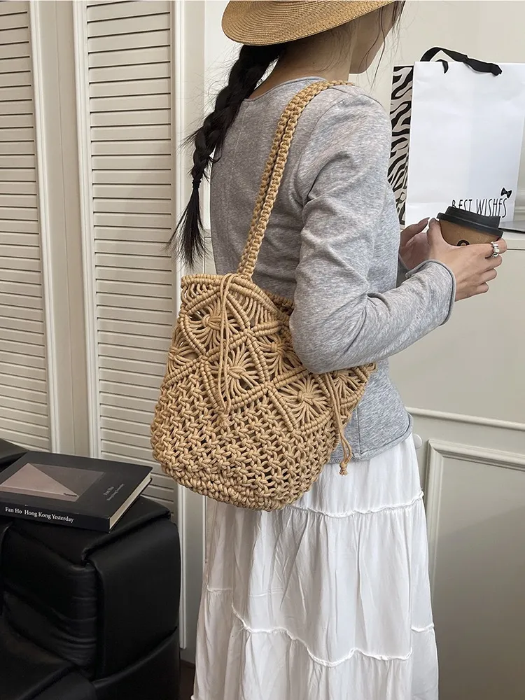 กระเป๋าถือสานสำหรับผู้หญิง สไตล์ฤดูใบไม้ผลิใหม่ปี กระเป๋าฟางอินเทรนด์ เหมาะสำหรับไปทะเล สะพายไหล่